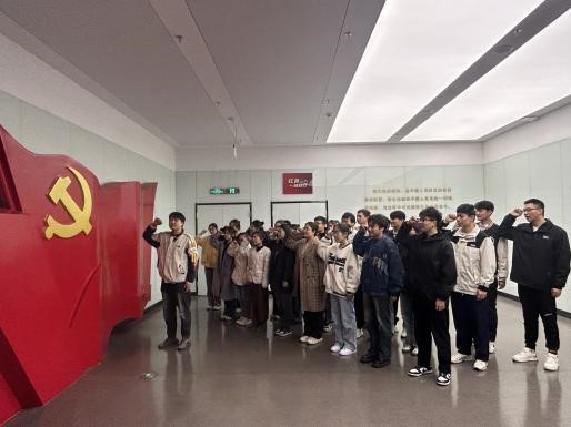 参观结束后,全体党员面向鲜红的党旗,在学生党员张勤光同志的带领下,重温入党誓词。铮铮誓言、字字铿锵,表达着坚定不移听党话、矢志不渝跟党走的信心和决心。
