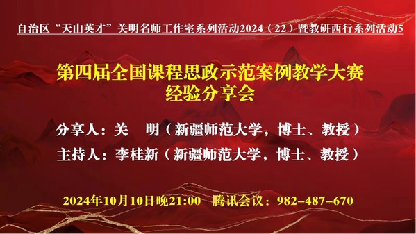 2024年10月10日晚21时,第四届全国课程思政示范案例教学大赛经验分享会如期举行。名师工作室负责人、教研西行项目组负责人、樱花直播
