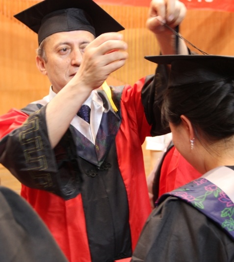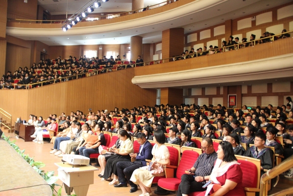 党委书记张鑫向师生们介绍了出席此次典礼领导和嘉宾,紧接着是刘和文院长致毕业辞。
