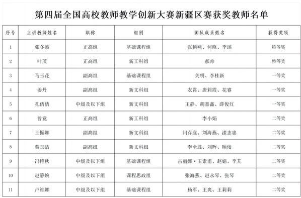 根据学校要求积极组织筹备院级第四届高校教师教学创新大赛选拔工作。2023年12月,学院根据专业和授课教师职称由各教研组推选了11名老师参加了学院预赛。经过学院评审最终推荐了3名教师代表学院参加学校选拔赛,校级比赛中我院马玉花老师和曾竟老师分别以第一和第三的名次闯入新疆赛区决赛。