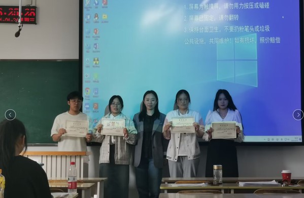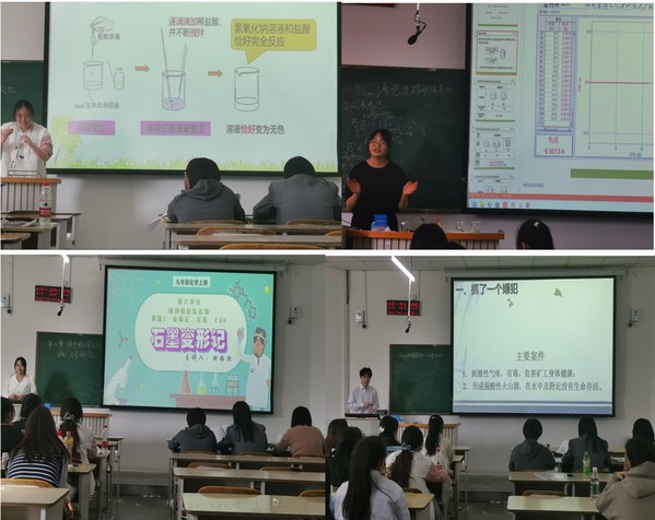 比赛中,同学们勇于创新教学方法,丰富教学内容,并充分利用学科特色加入实验元素,精心设计了多个实验,展示了实验技能和创新思维,通过直观的实验现象,帮助学生更好地理解化学知识。经过激烈角逐,最终评选出三位同学代表学院参加校级比赛。同时,董玲和陈远娇老师被评为优秀指导老师。