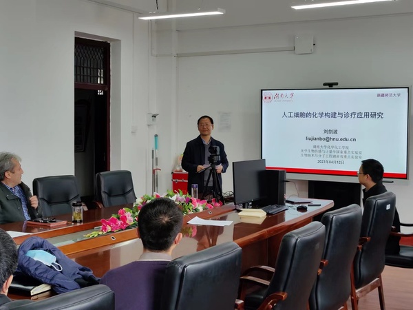 刘剑波教授应邀来我院进行学术交流。12日下午刘剑波教授作了题为《人工细胞的化学构建及其诊疗应用研究》的学术讲座,讲座由崔现宝副院长主持,学院教师及博士研究生参加了交流。