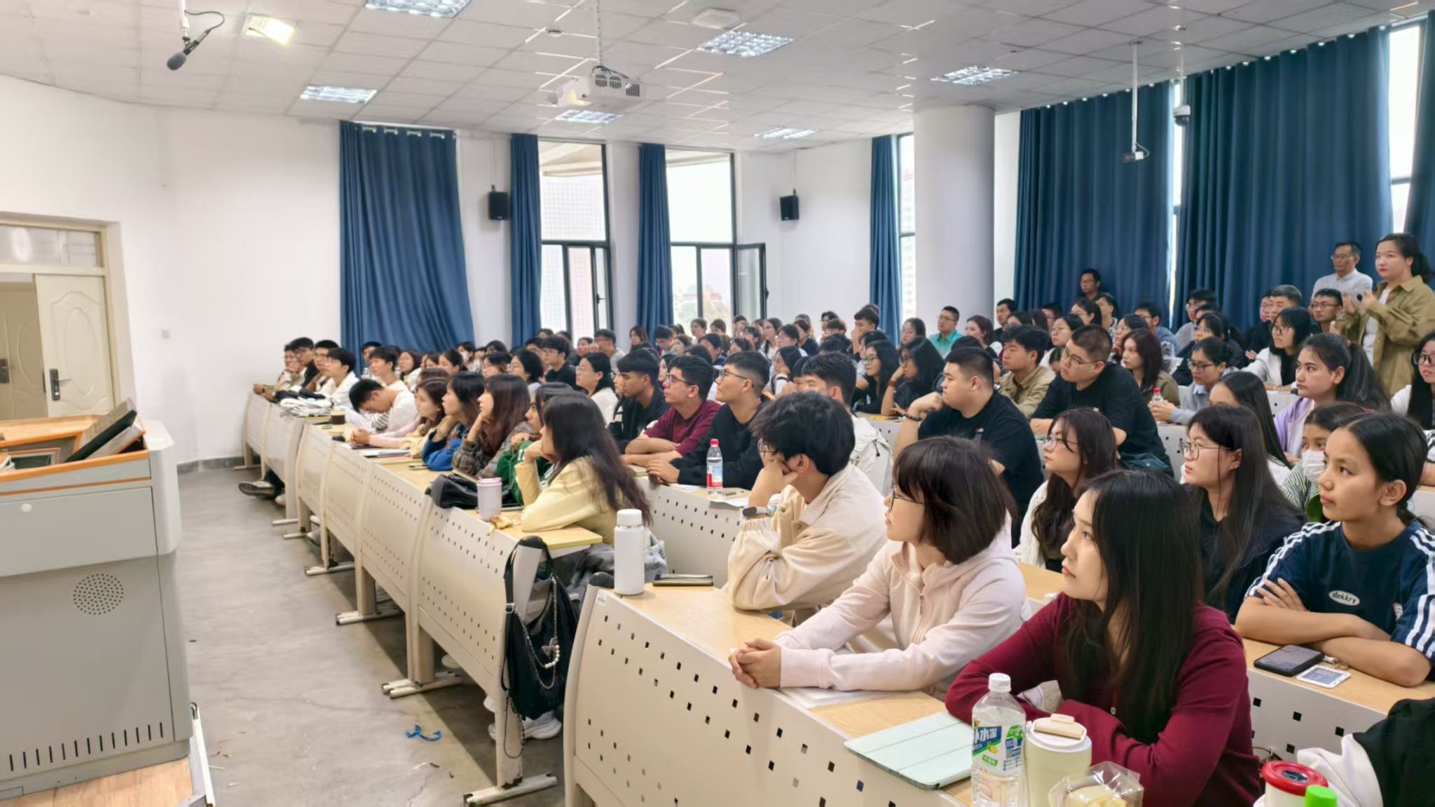当阅兵仪式正式拉开帷幕,同学们的目光瞬间被屏幕牢牢吸引。徒步方队迈着铿锵有力的步伐整齐前行,嘹亮的口号响彻云霄,尽显中国军人的钢铁意志与飒爽英姿,同学们无不被这震撼的气势所感染,内心对军人的崇敬之情油然而生;装备方队中,新型坦克、舰载机、歼击机等依次亮相,直观展现出我国日益强大的国防实力,让在场每一位同学都深切感受到身为中国人的骄傲与自豪。“看到这些先进装备,我才真正体会到祖国的强大,这种自豪感是无法用语言形容的!”环境工程专业的夏海明激动地分享道。