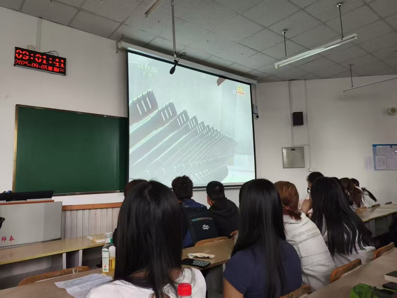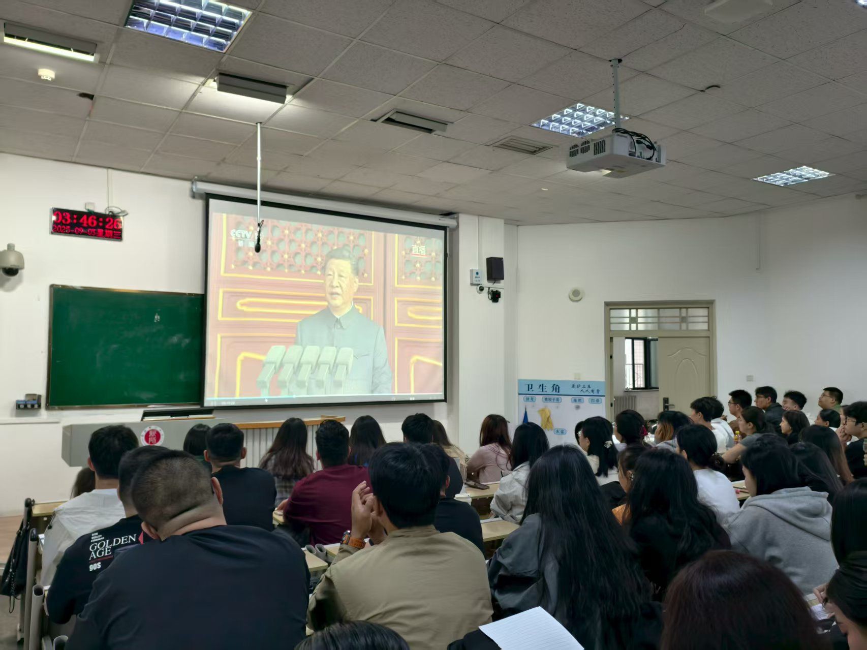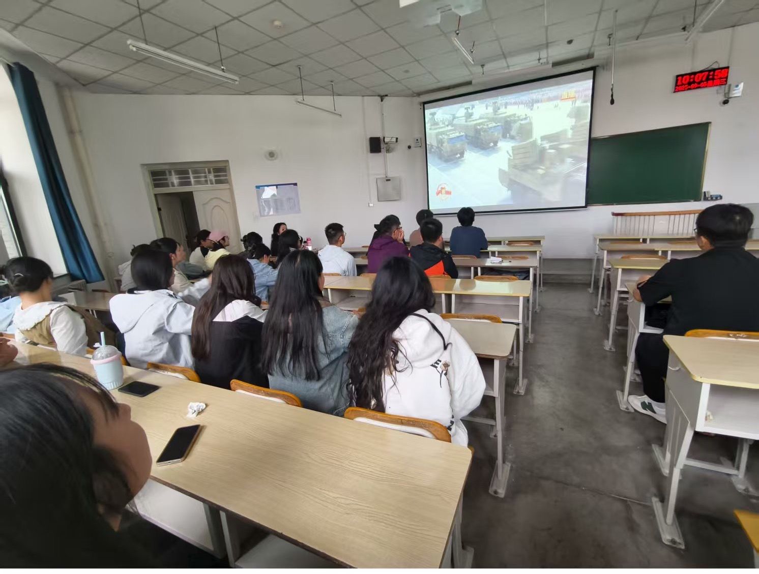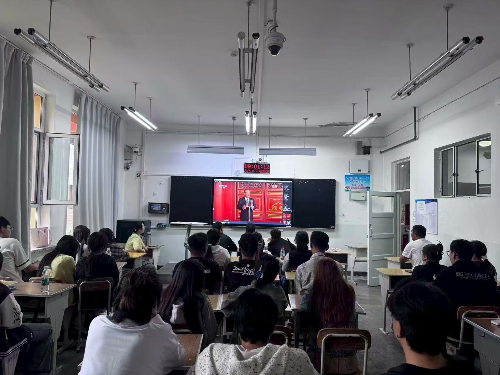 组织学子齐聚教室,通过大屏幕同步观看盛大的阅兵仪式,同学们怀着崇敬与激动的心情,共同见证这一庄严时刻。