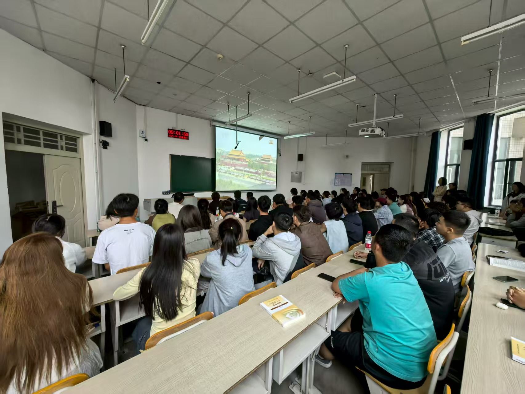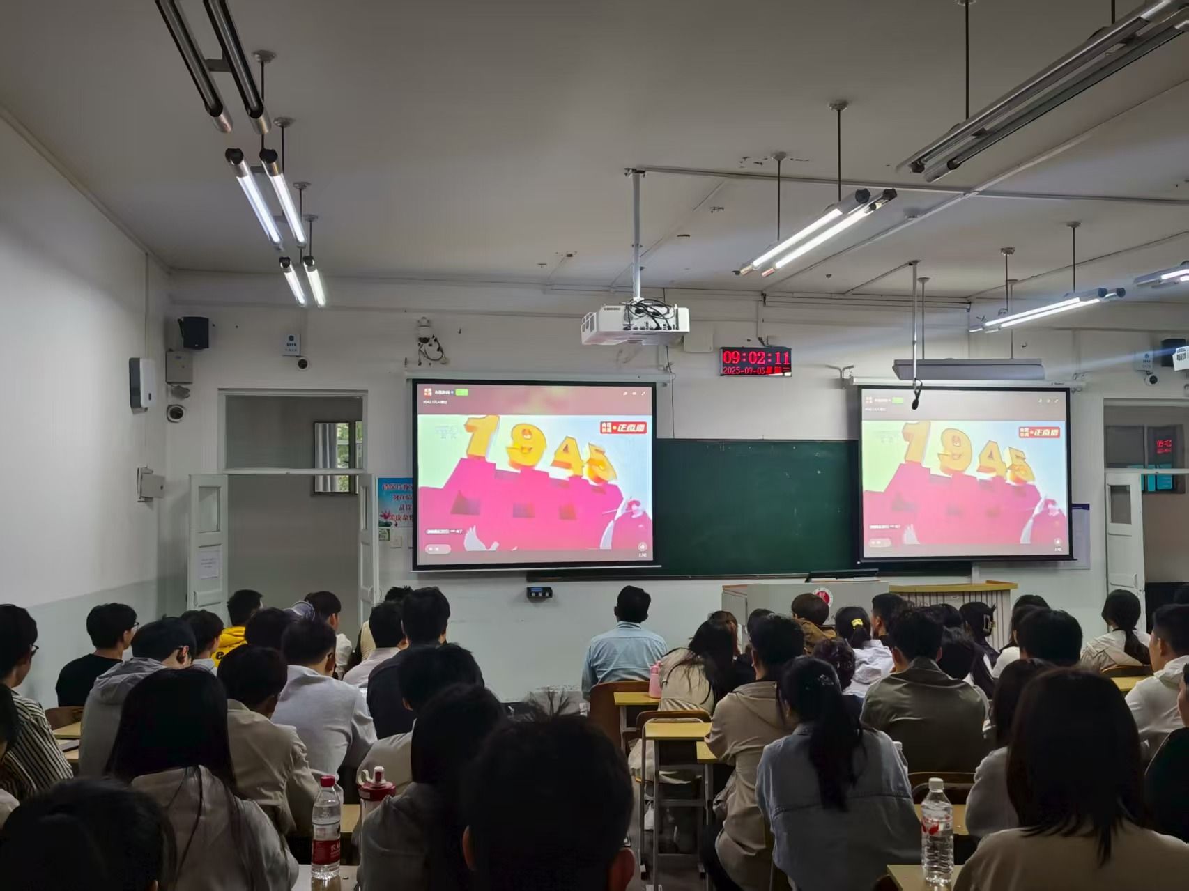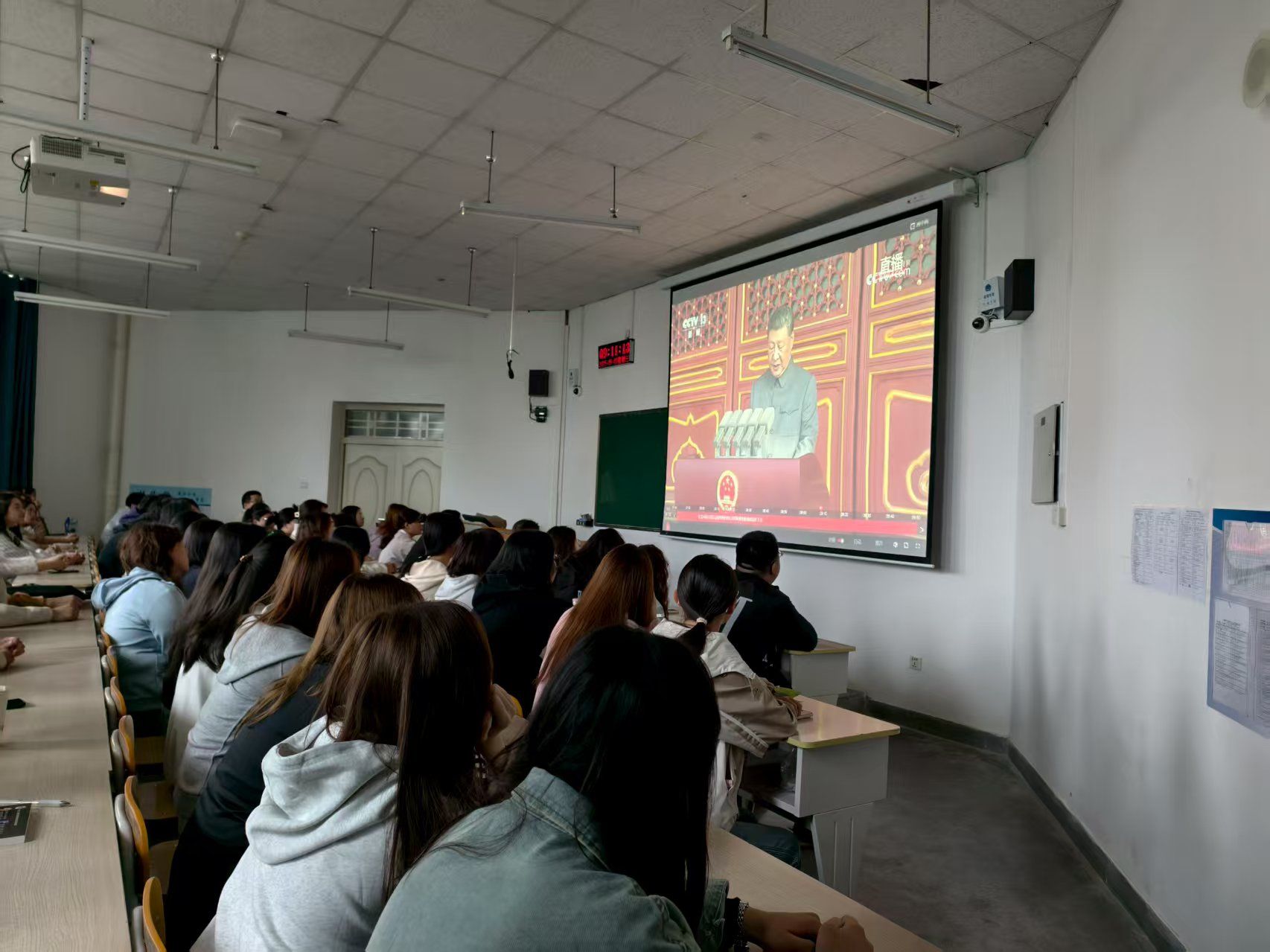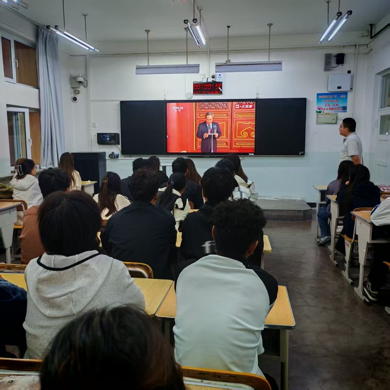 组织学子齐聚教室,通过大屏幕同步观看盛大的阅兵仪式,同学们怀着崇敬与激动的心情,共同见证这一庄严时刻。