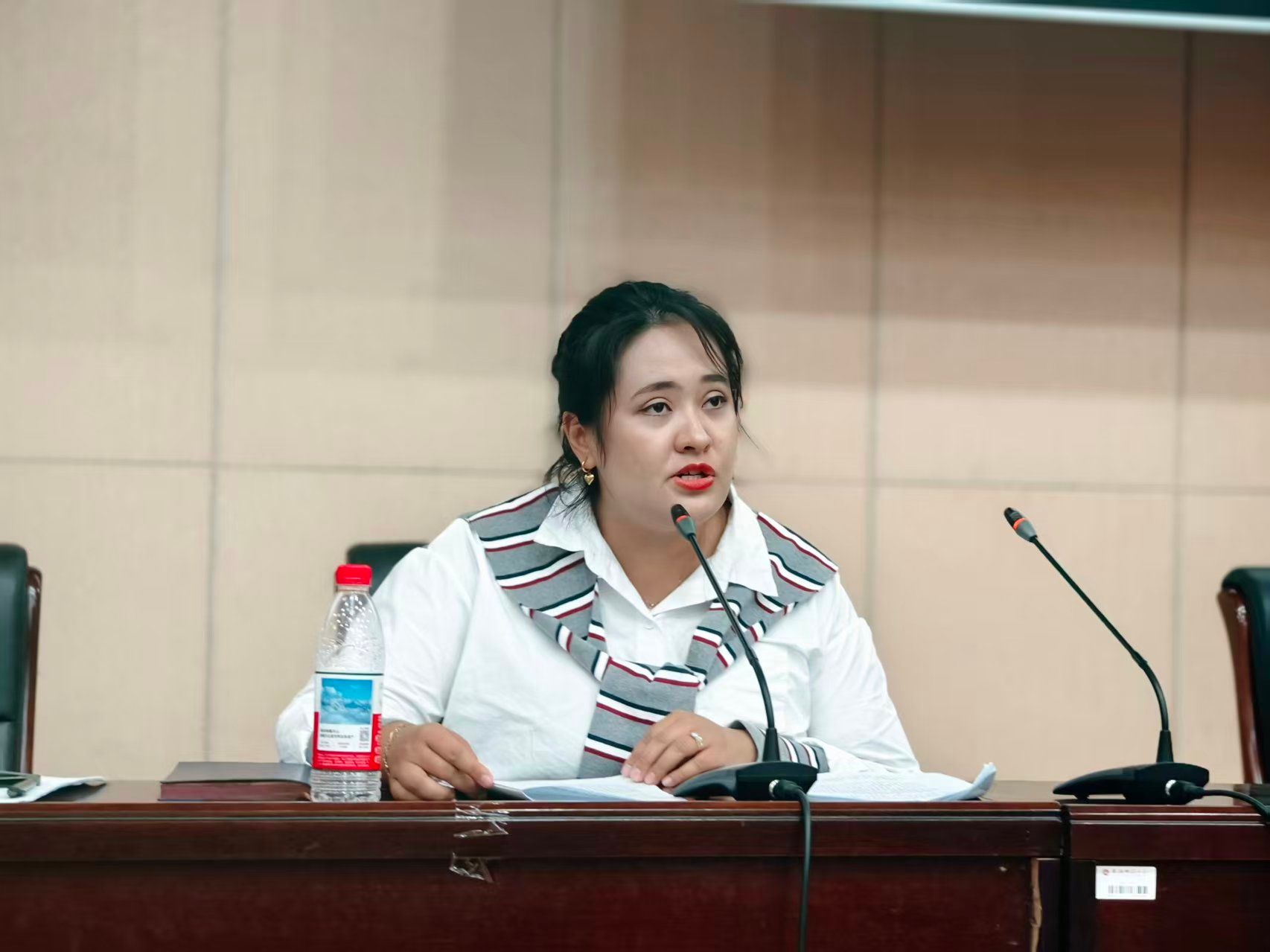 阿丽菲热老师向同学们讲解了班主任与辅导员协同育人新模式