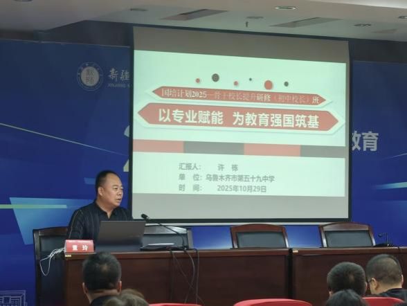 聚焦新时代新疆中学教育发展核心任务,研修班精准设置两场高水平主题论坛与多场分组交流活动,以 “理论研讨 + 实践碰撞” 模式破解发展难题、凝聚育人共识。在“铸牢中华民族共同体意识视域下的学校育人模式创新与实践”论坛中,阿瓦提县第二中学校长孟勇炜系统介绍“浙阿‘石榴籽’融情工程”、校园诗词大会、文化长廊建设等项目,为推进民族团结教育提供可复制的实践样本。